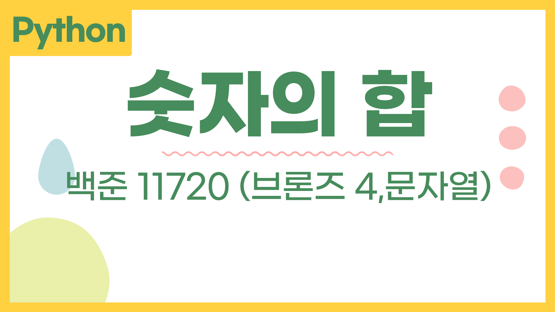 [백준 11720] 숫자의 합 (브론즈 4) 문제 풀이- 파이썬 python