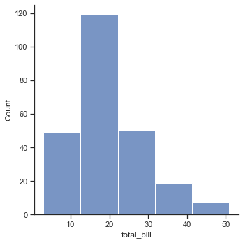 In [13]:sns.displot(tips['total_bill'], bins=5)