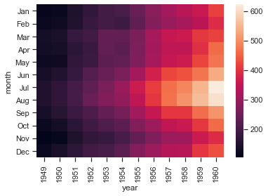 In [15]:flights = flights.pivot('month', 'year', 'passengers')