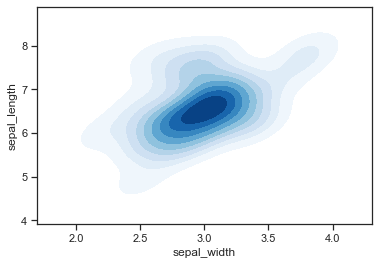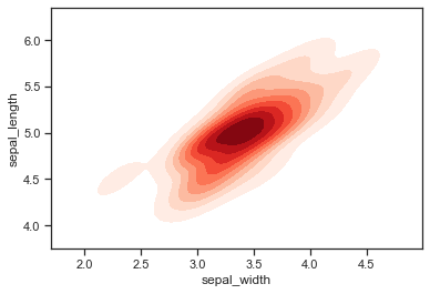 - shade=True : fill 변수와 동일한 기능을 하여 같은 Density를 가지는 면적을 같은 농도로 칠해준다.