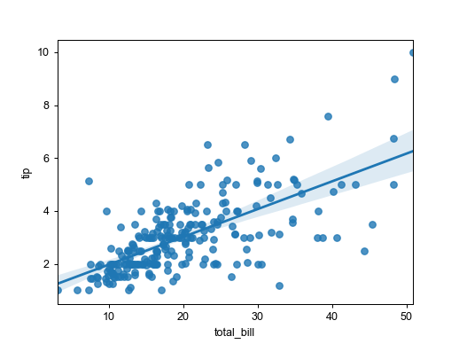 - 데이터의 분포와, 이 데이터를 선형으로 표현하는 Regression Line을 동시에 표현해주는 그래프이다.