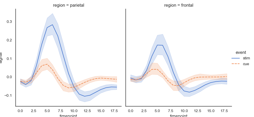 - 여기서의 가장 큰 차이는 col='time' parameter 일 것이다.