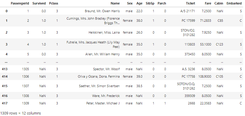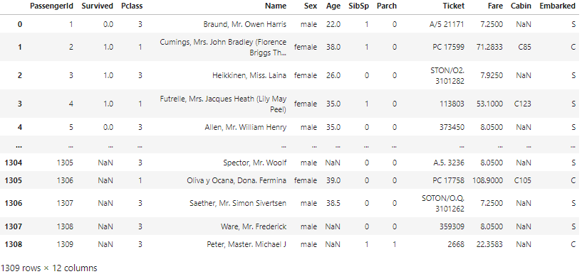 즉, df_list[0]에는 train data가, df_list[1]에는 test data가 들어간다. - In[6]는 이렇게 두 개의 별도 DataFrame에 있던 데이터를 하나로 합치기 위해서 pd.concat을 한다.