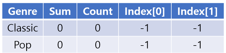 - 처음부터 돌며 각 장르별로 playCount의 Sum을 구해줄 수 있다.