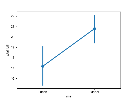- Point Plot을 통해 점심 저녁의 평균값과 분포를 확인할 수 있다.